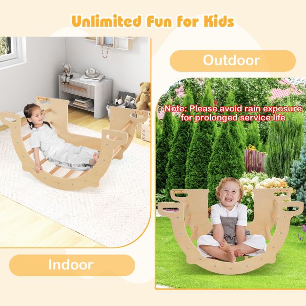 Versatile Indoor and Outdoor Play: Ready for any adventure, this wooden rocker toy seamlessly transitions from indoor fun to outdoor excitement, perfect for use at home, in the backyard, or in a kindergarten. Note: Store indoors when not in use to prevent exposure to sun and rain.