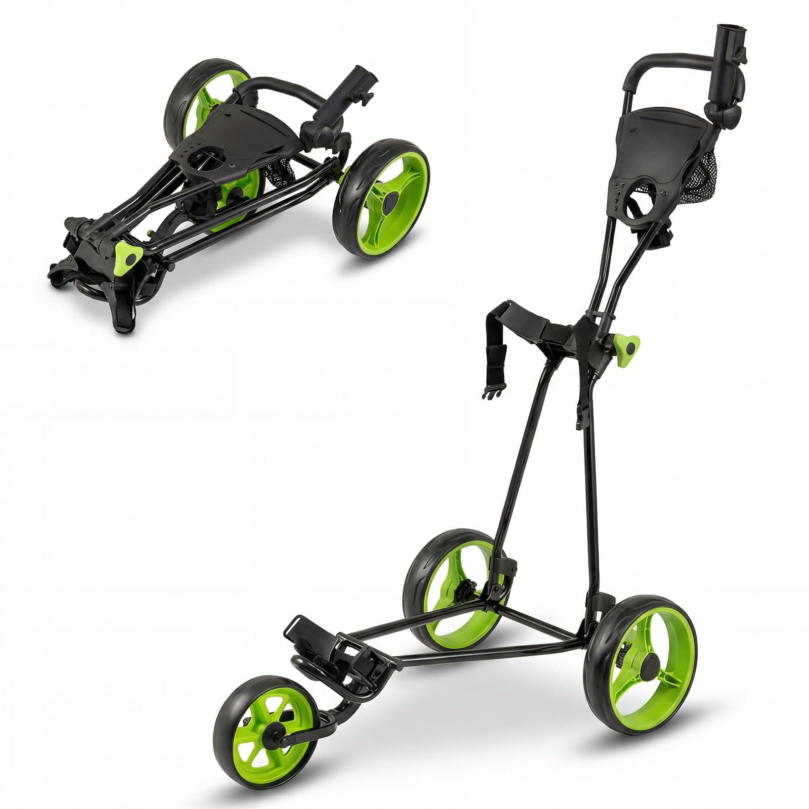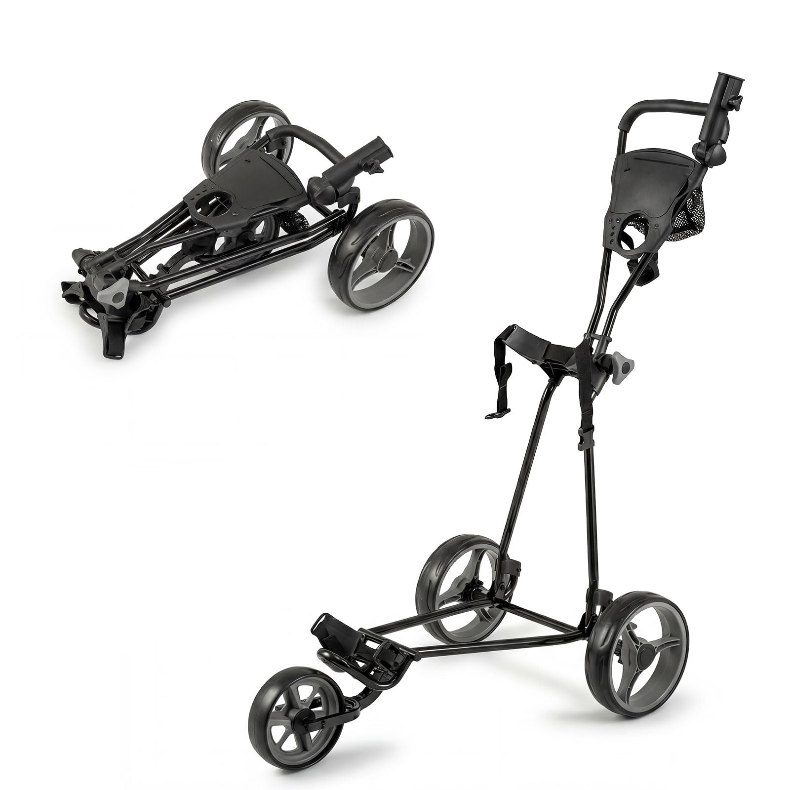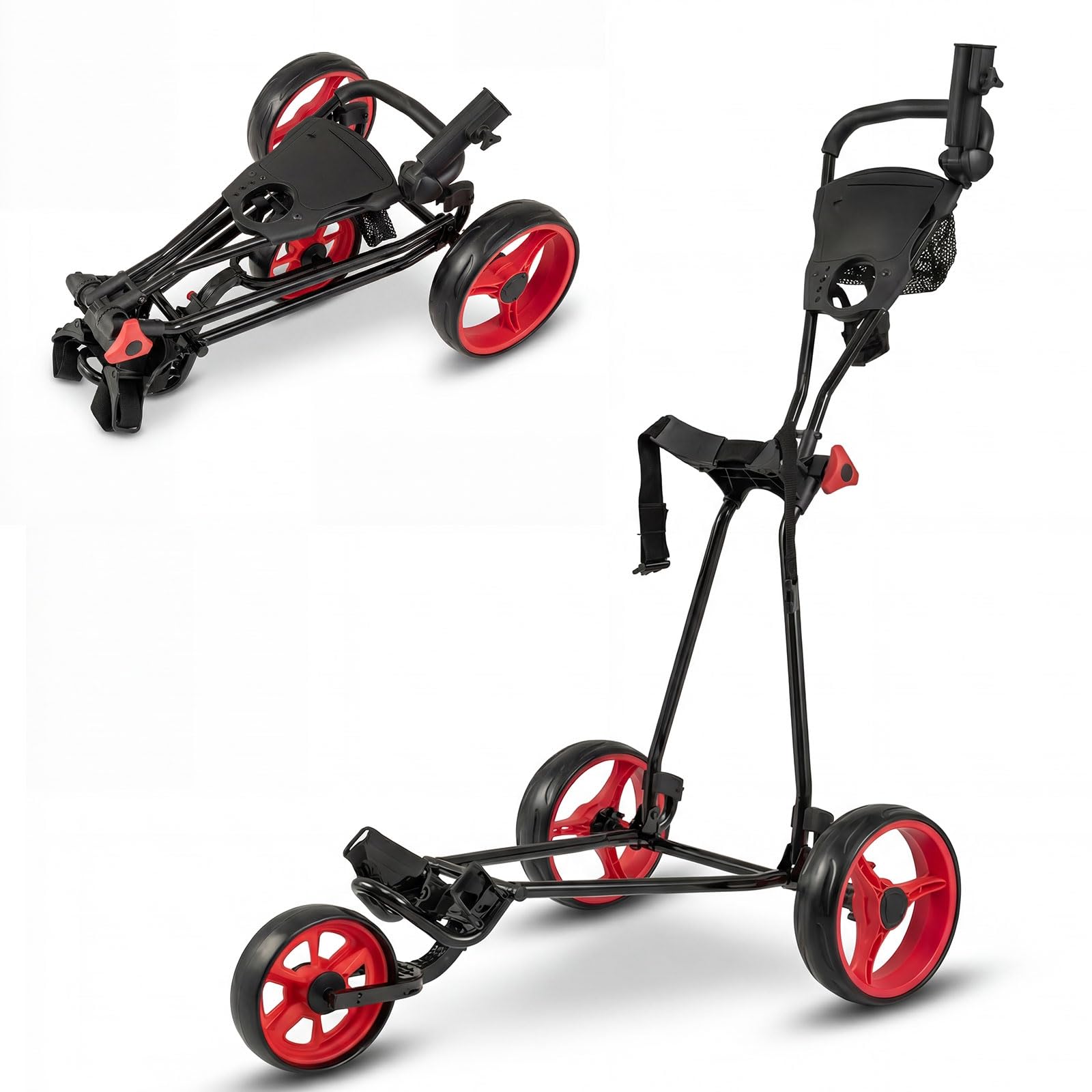 • ✔MAINTENANCE-FREE WHEELS & BRAKE SYSTEM- Equipped with 3 wheels covered with EVA foam for smooth running on almost all surfaces. Plus, the rollers feature a one-button brake, allowing you to keep your golf carts in the desired position at any time while keeping your belongings safe.