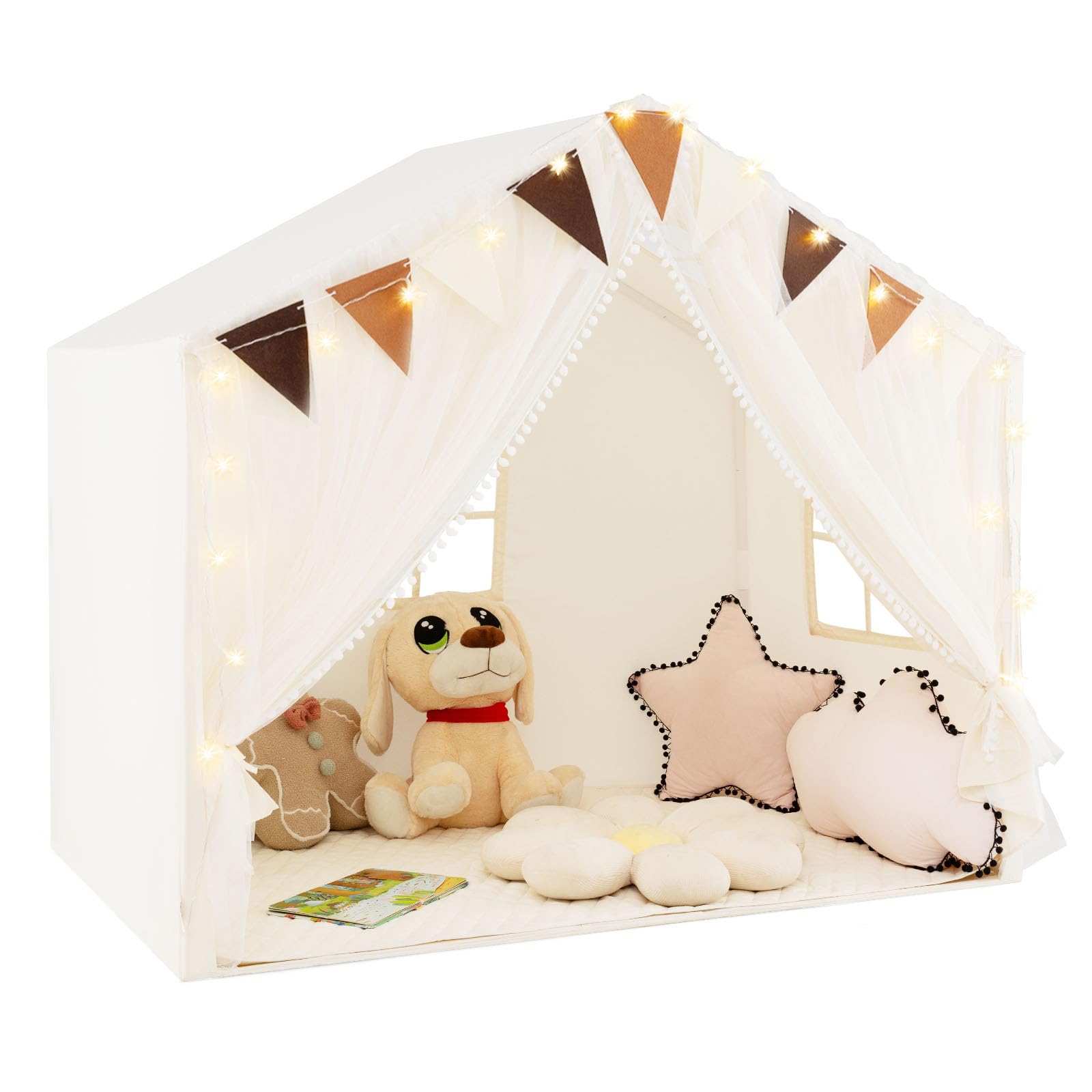 - ✔EXQUISITE APPEARANCE ADDS VIBE- Featuring an enchanting star light string, elegant tassels, and colorful pennant banners, the indoor tent sparkles with charm and provides endless entertainment possibilities for kids. When putting at home, the kids tent also adds elegance to you space