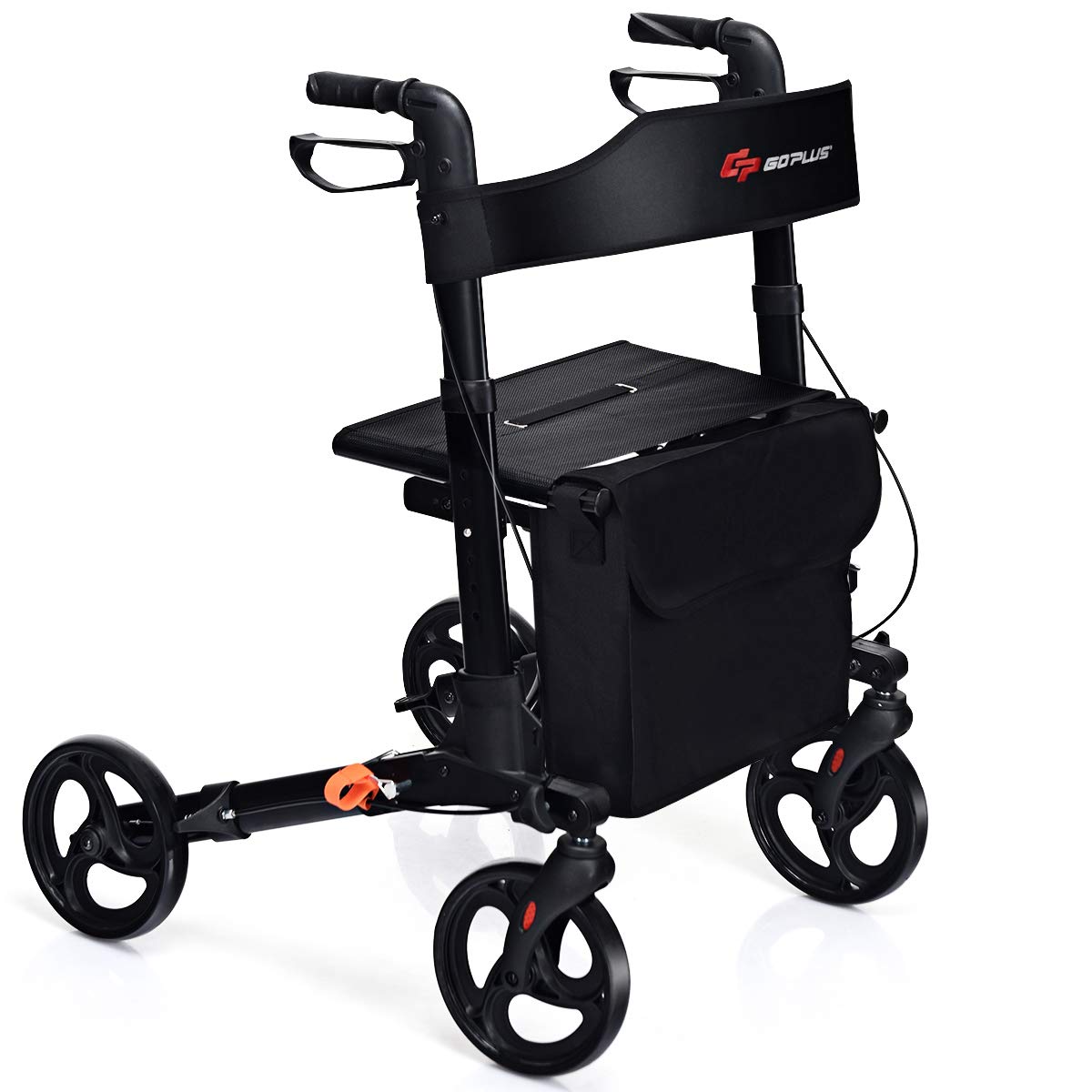 - ✔MULTIPURPOSE AID- The Rollator Walker comes equipped with a removable storage bag and a cane holder to store your belongings for added convenience, and it also can be used as a chair with seat and backrest, which allow to sit down if user needs a break.