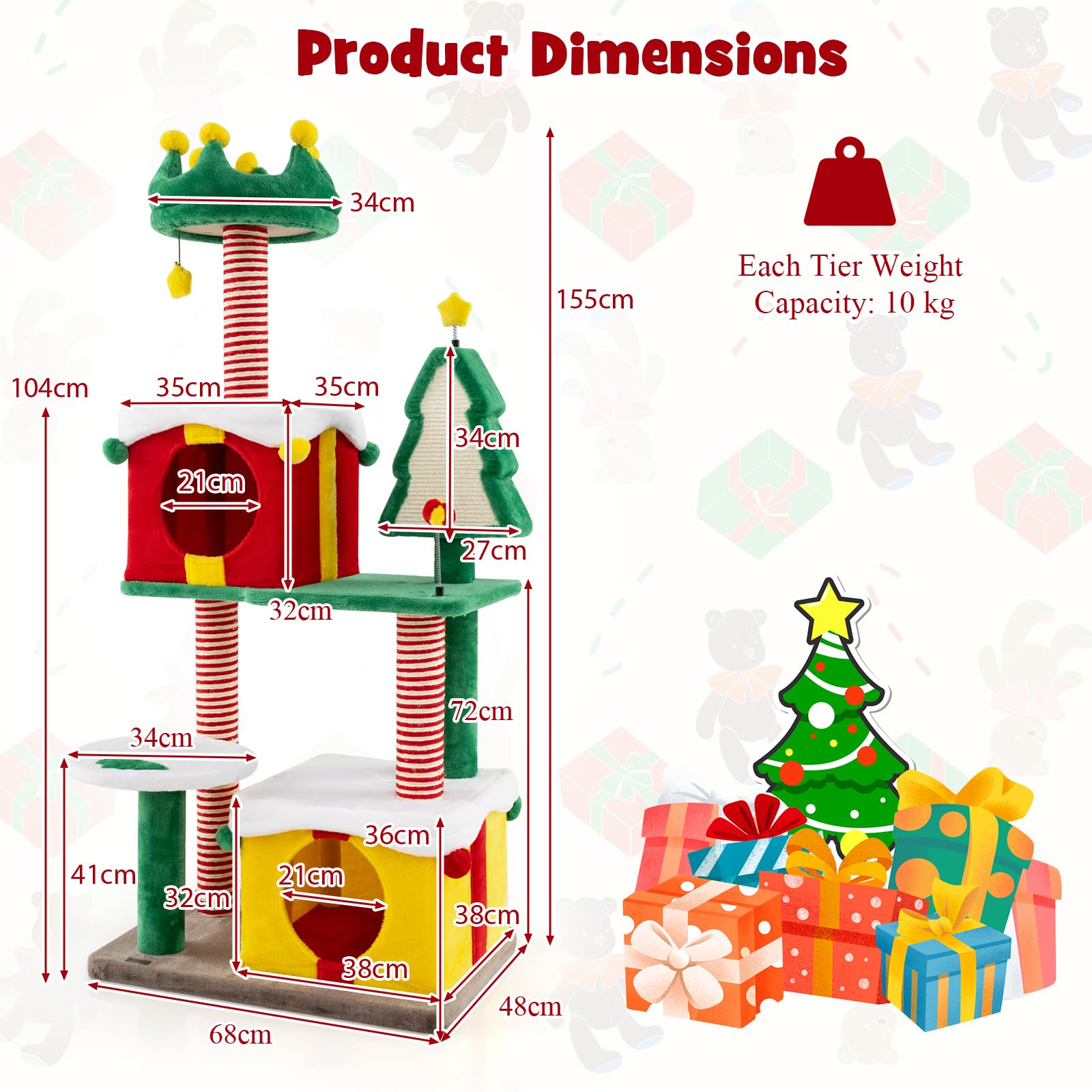 Cute Christmas Cat Tree Large Cat Tower with Sisal Scratching Posts and Carpe