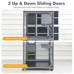- ✔EASY ACCESS & CAT-FRIENDLY DESIGN- Equipped with 2 up and down sliding doors, the cat cage can be connected to the window or pet door to let your cats move from indoor to outdoor freely. Plus, there are 2 lockable large doors, allowing you to have fun with your cats as well as clean the cat's litter box easily.