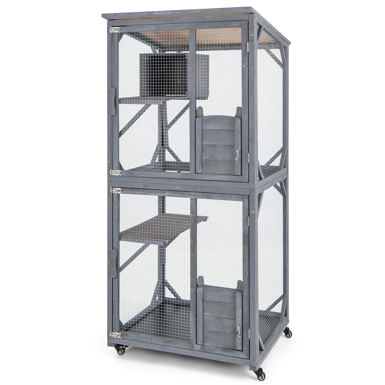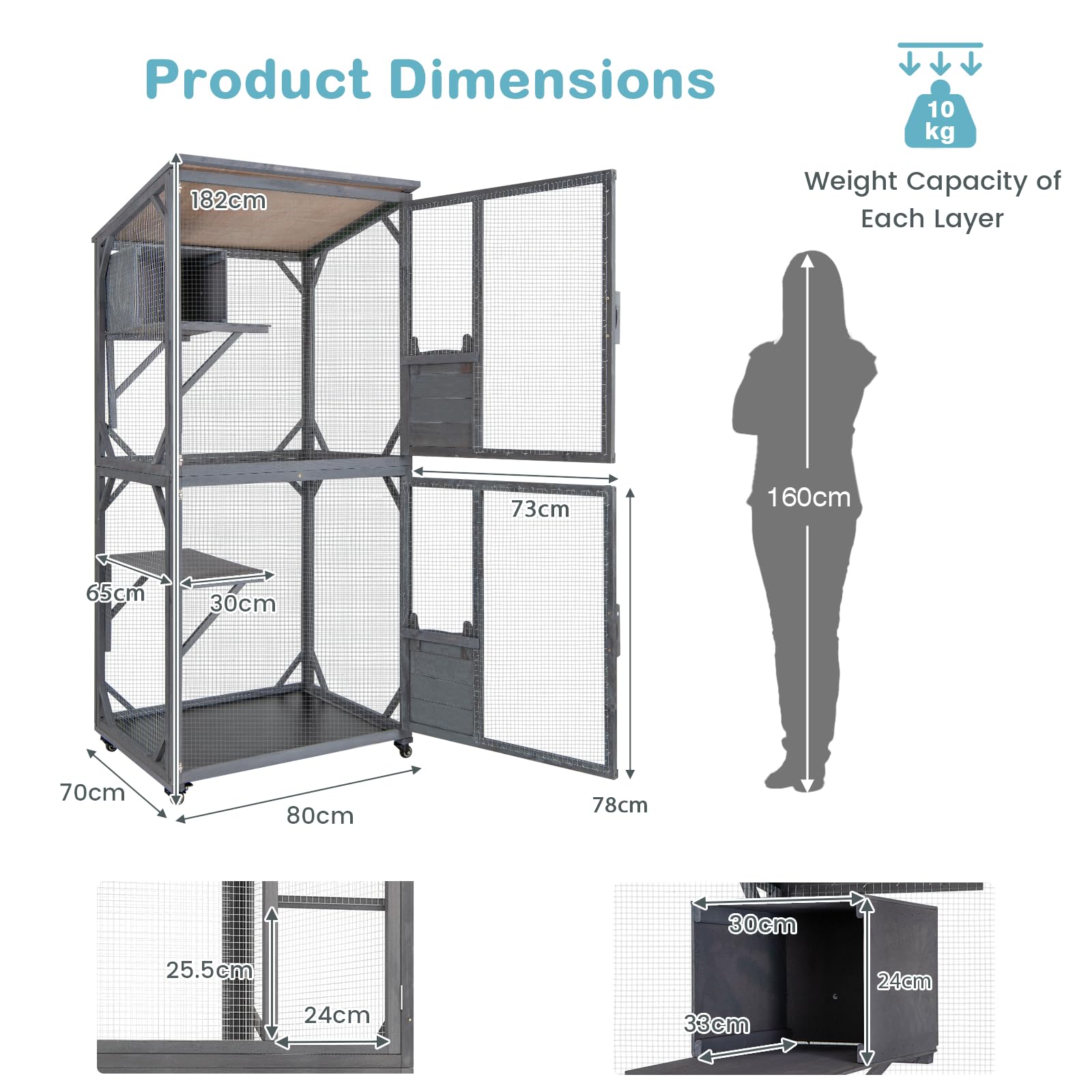 - ✔WIDE RANGE OF APPLICATION- Whether indoor or outdoor, this kitty house with visible and durable metal wire enclosure net can give your cats a great place to play or rest. The overall size is 80 x 70 x 182cm (L x W x H), which is recommended for 2 cats or other small pets, like hamsters and parrots.