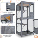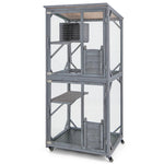 GYMAX Large Cat House, Wooden Cat Enclosure on Wheels